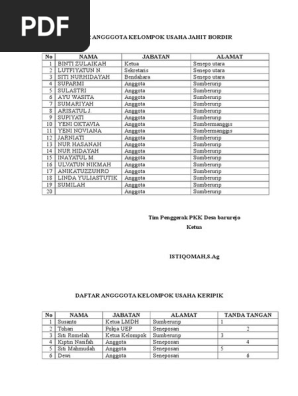 Daftar Anggota Kelompok Usaha Keripik Dan Bordir