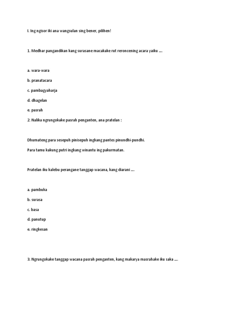 Contoh Soal Ulangan Pranatacara Basa Jawa Kelas X Sma Ma Smk Ambarisna Com